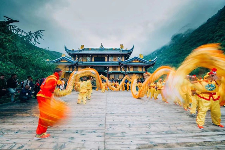 黄龙景区以彩池、滩流、瀑布、雪山、古寺“五绝”著称于世。其中“古寺”代表的黄龙后寺(分别有前、中、后三寺),同时还是荟萃当地民俗活动的展演之地。