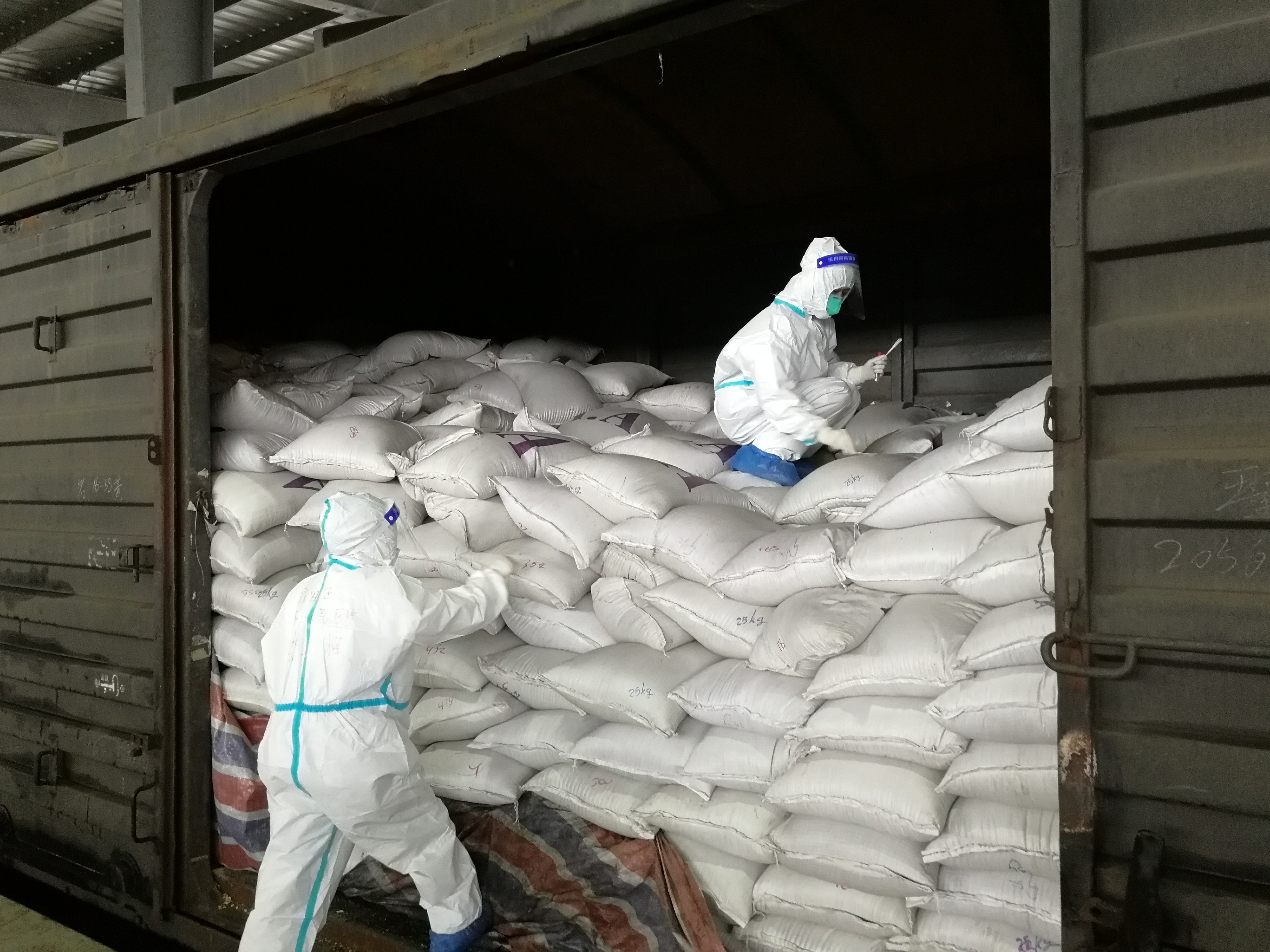 据悉,该批进口货物已分别在临沧清水河口岸一线和临沧火车站二线完成疫情防控和检疫防疫措施,到达德阳国际铁路物流港后,严格按照《德阳国际铁路物流港黄许镇站新冠肺炎疫情防控工作方案》要求,在黄许镇站三线再次完成疫情防控和检疫防疫管控措施。