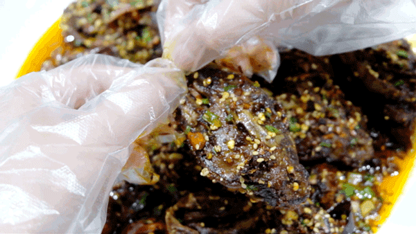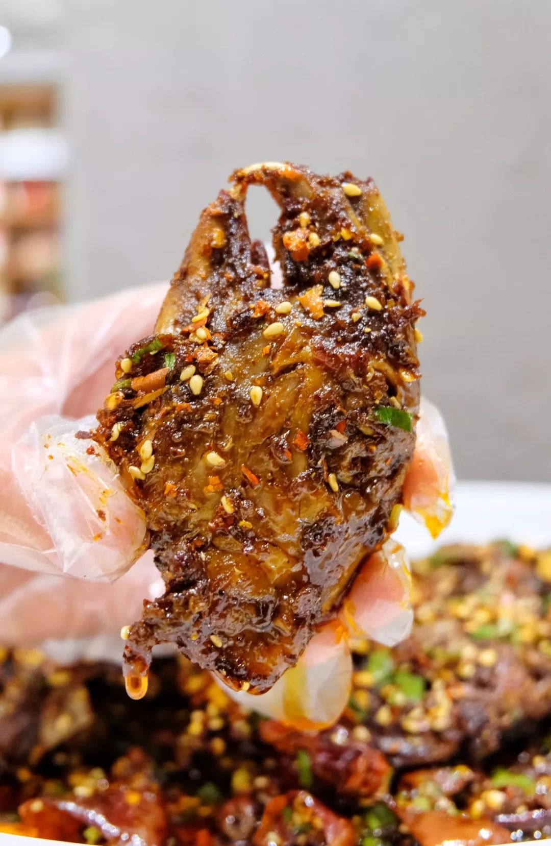 兔头很拽实,用手一撕,细嫩的兔肉瞬间“骨肉分离”,却又“藕断丝连”!第一口就被这油辣的口感惊呆。