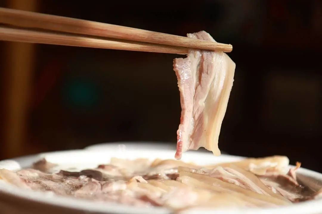 洪雅不仅环境康养宜居,这里的美食也是滋补养生。切好的羊肉,用煮羊肉的羊汤温热后放入碗内,端上桌来,蘸点蘸水搭配,味道简直不摆了。