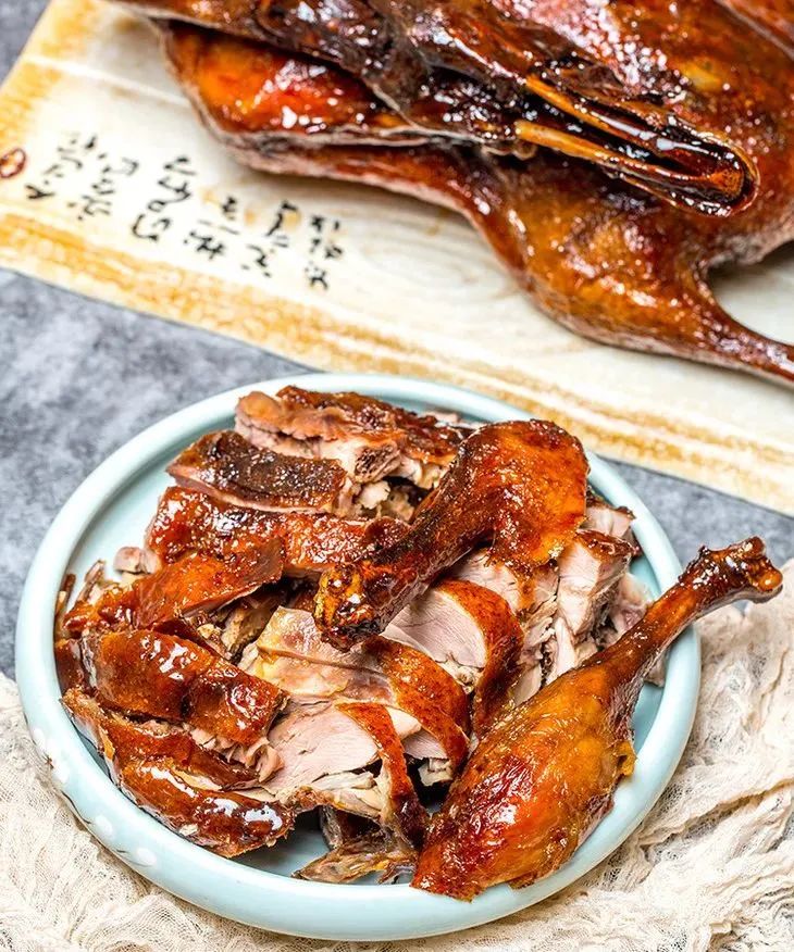 一口咬下,连皮带肉!表层的糖裹着酥脆鸭皮和肥嫩的鸭肉,微甜带咸,能吃出层层递进的卤香味。