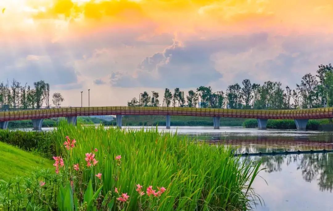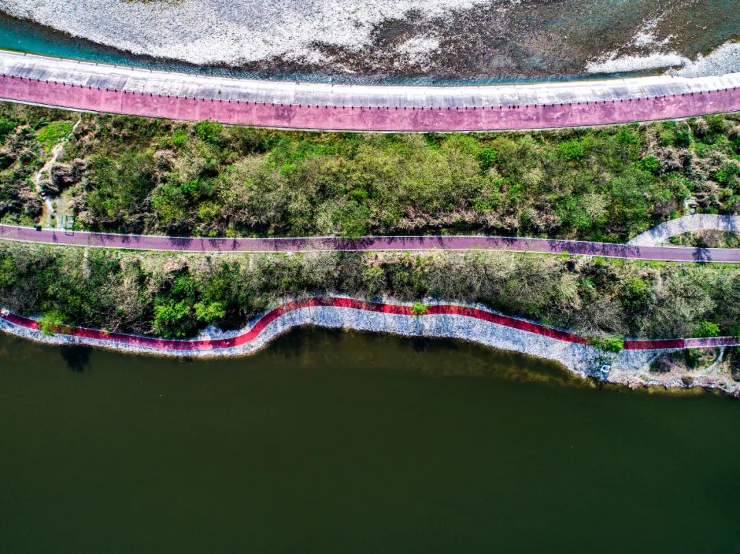 这是一条人与自然和谐共生的绿色生态廊道,它依托蜿蜒的河流,用大自然缤纷的色彩在这片现代化的城市空间里,勾画出一幅山水田园的诗意画卷。