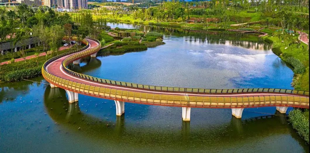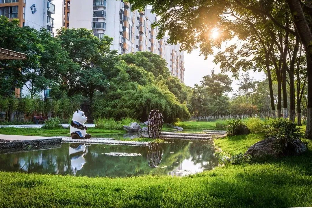 以熊猫文化为特色,构建了5.1平方公里环状“城市公园”和现代化、高品质的102公里区域级生态绿道,打造中国最大的露天熊猫文化博物馆。