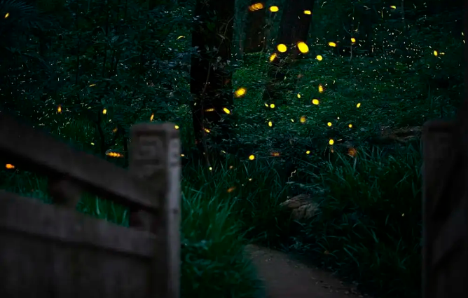 漫天萦绕的萤火精灵飞舞流转,在你的肩头憩息,星星点点,十分迷人。
