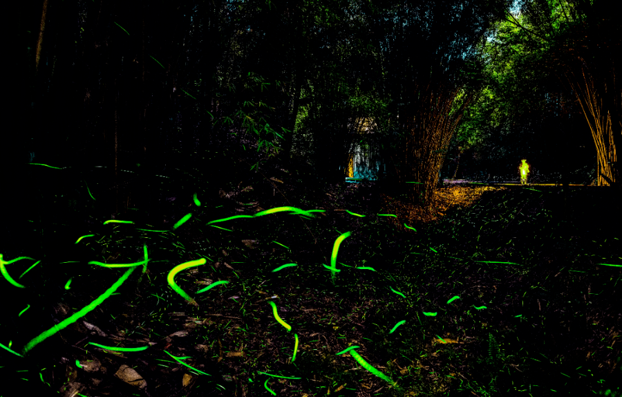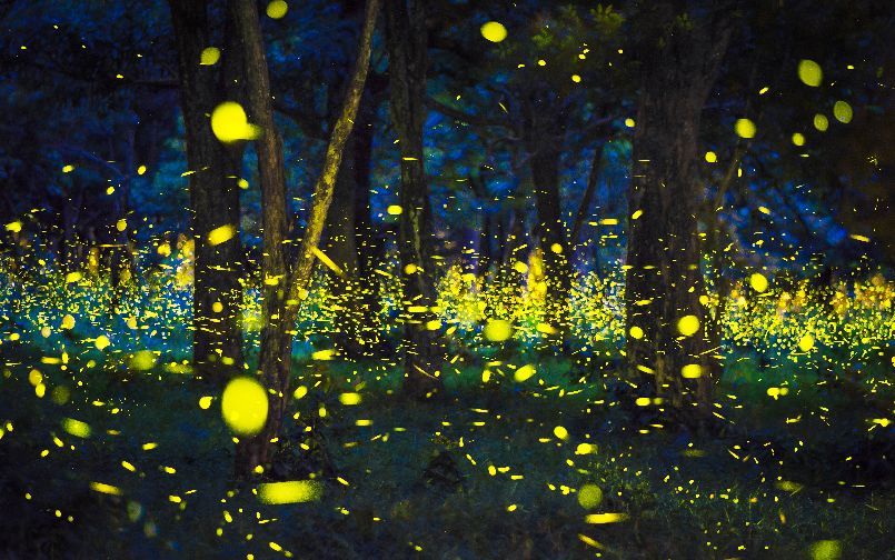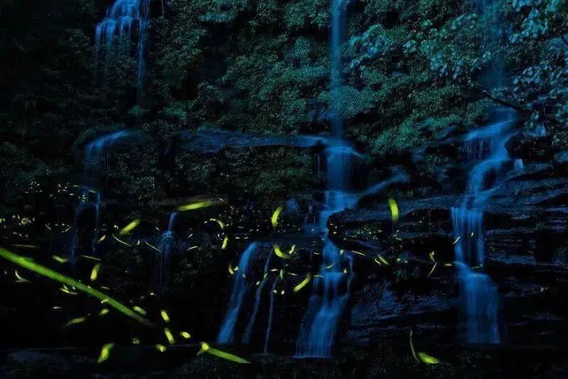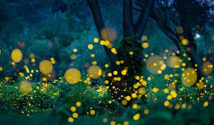 在没有繁星的日子里,萤火之光唤醒了沉寂的夜晚,成千上万只萤火虫翩翩起舞,仿佛进入了梦境一般。