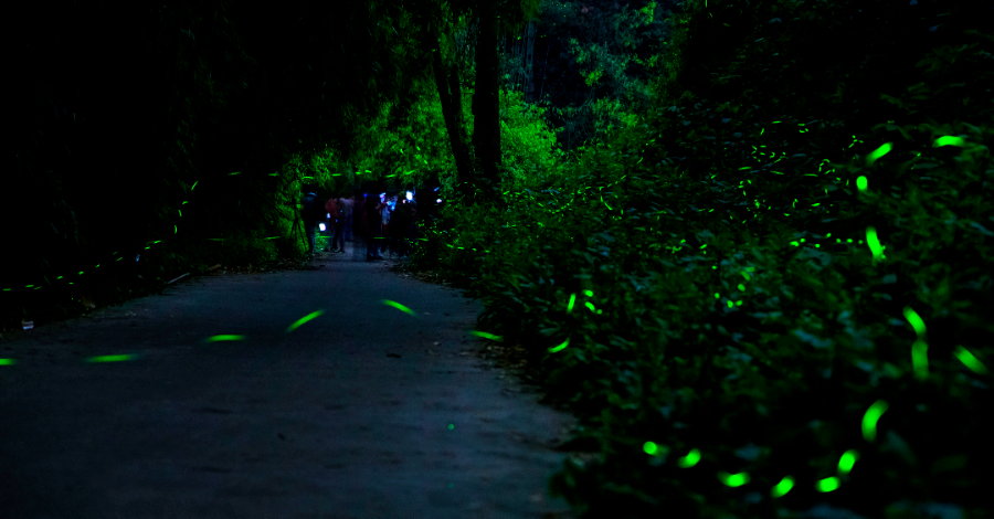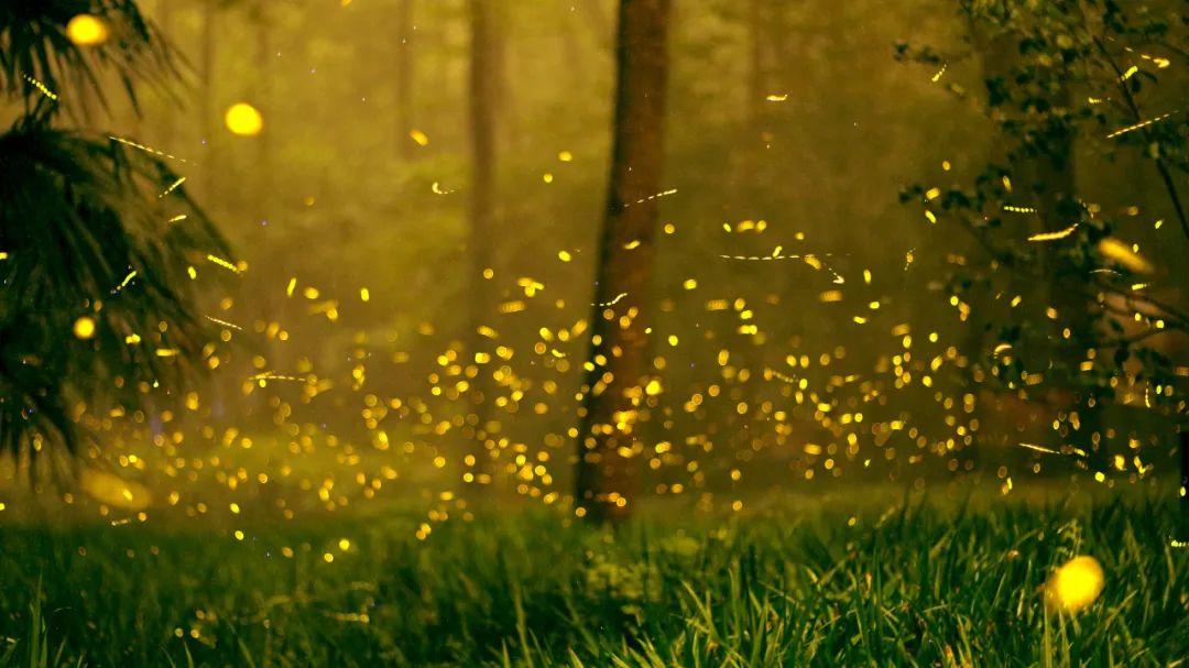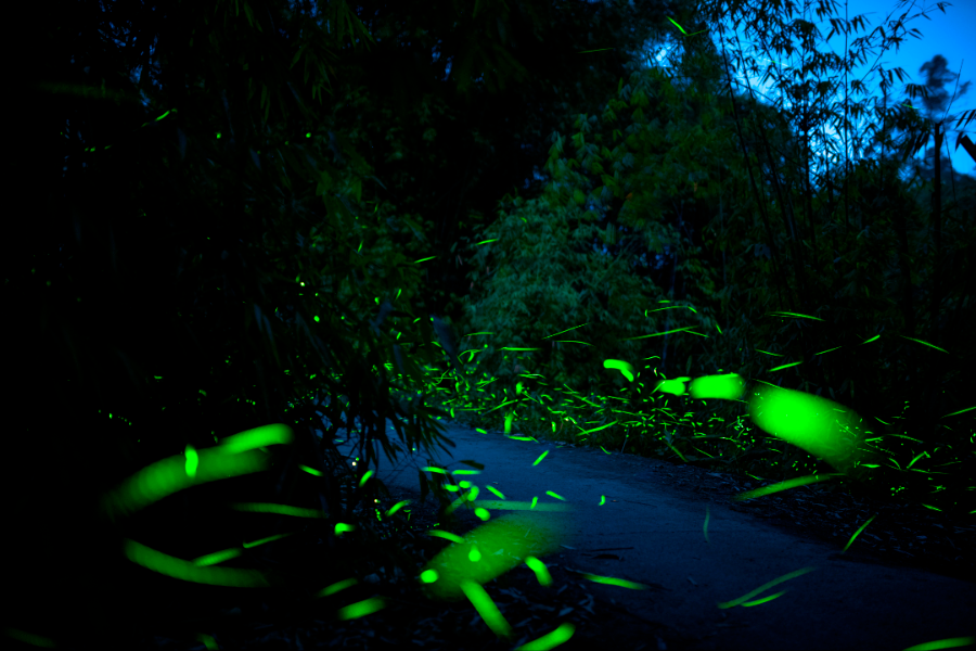 夜色降临之时,草丛树木间“星光点点”,穿梭在充满萤火的小径,流萤飞舞像一场如梦似幻的星河之旅。