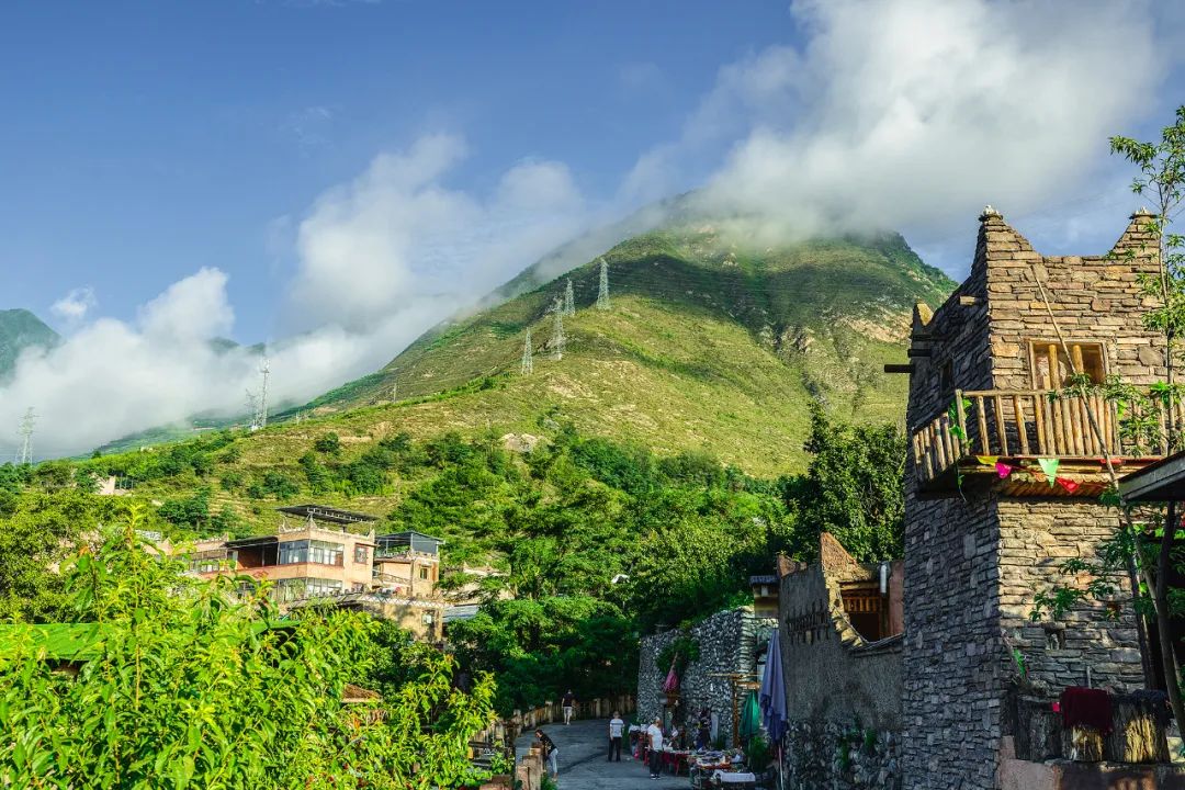 村落傍山而建,这里的居民95%是羌族, 沿袭了羌族传统的建筑风格和布局,并且一直保留着古老而独特的传统文化。