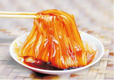 川北凉粉传统制作技艺发源于四川南充顺庆,以川北特产豌豆、菜籽、辣椒等为原料,经过四关、八部、二十四道工序手工制作,距今已有90多年历史。