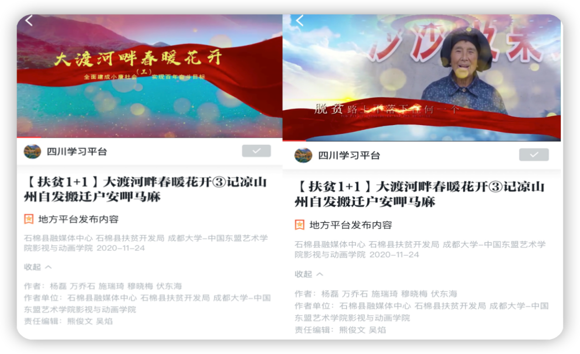2020年党员教师工作室完成5集“脱贫攻坚”短视频“大渡河畔春暖花开”登录“学习强国”四川平台
