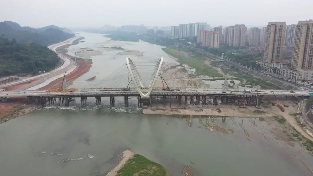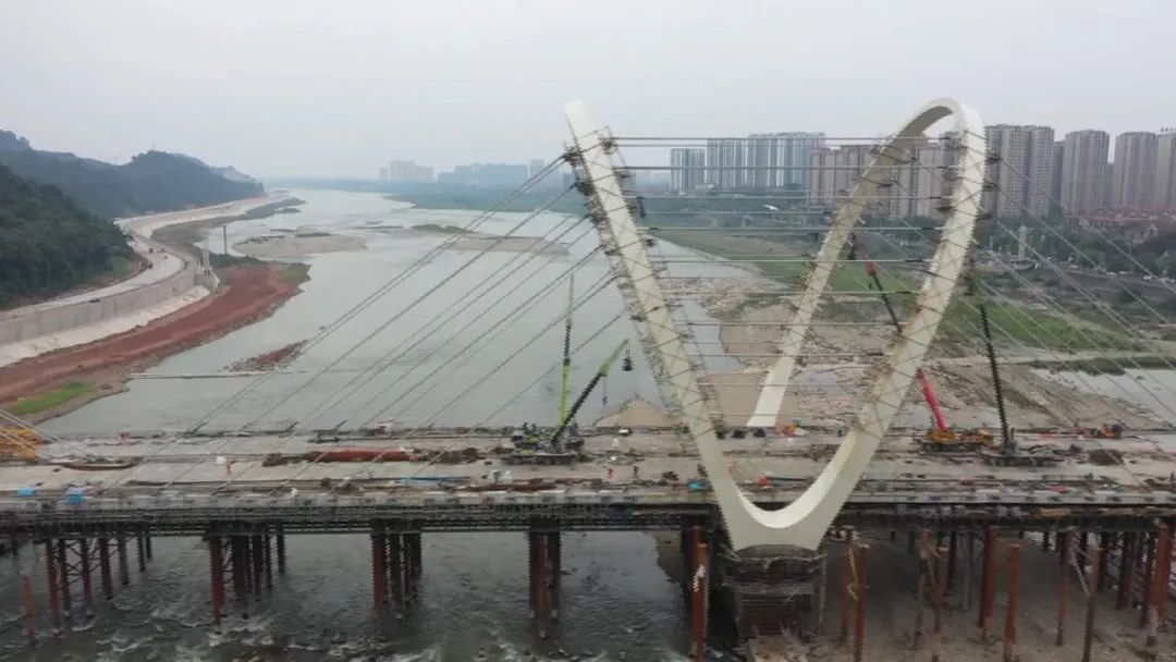 工程负责人介绍,现阶段正在进行斜拉锁挂锁,以及桥面附属工程施工,目前该项目已进入收尾阶段,施工方正在全力进行相关配套设施等建设,力争10月底达到通车条件,早日投用。
