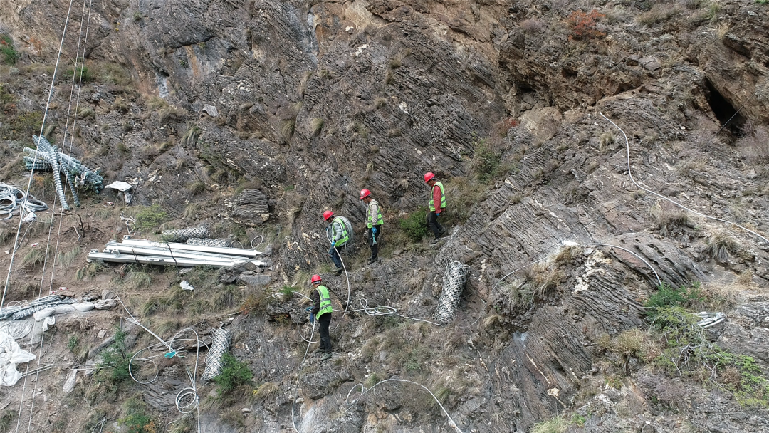 在大风湾棚洞建设项目现场,工人们正在紧张忙碌地安装防护网。现场负责人告诉记者,该项目总投资1900万,建设总长133米,建成后为双向单车道明洞,宽为10.5米,高为6米,包含人行通道,计划2023年5月竣工投入使用。施工现场外的人行道和机动车道将会改造为树木成荫、草坪翠绿的绿化公园。