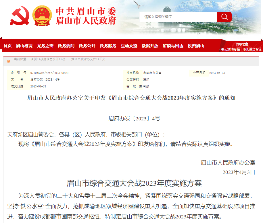 《眉山市综合交通大会战2023年度实施方案》