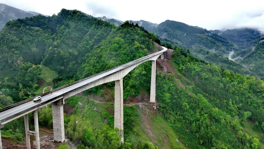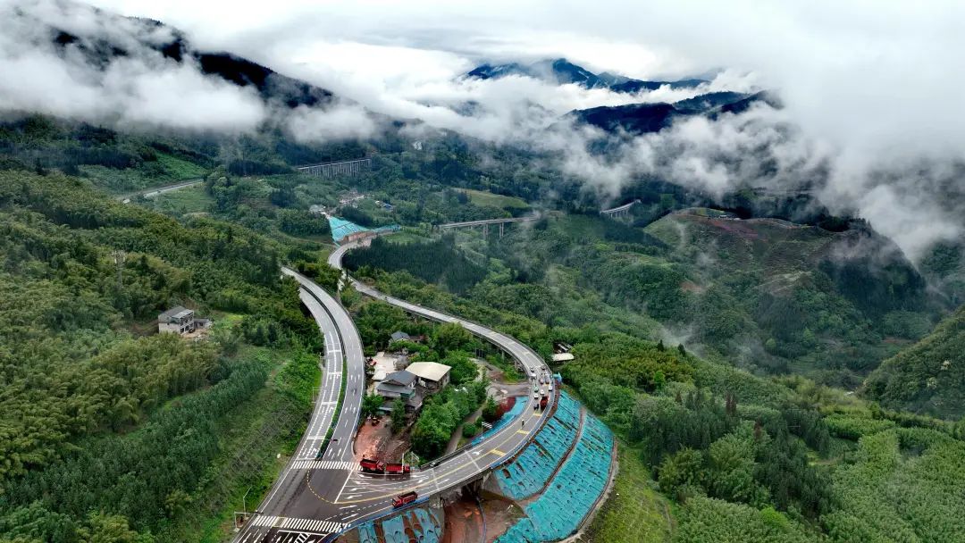 据介绍,瓦屋山快速通道桥隧比高,其中3座特大桥,最高桥梁──王长沟大桥主墩高94米,为目前眉山市最高桥梁,沿线地质多为顺层结构,施工情况复杂,项目在艰难困苦中极速推进,展现了攻坚克难的勇气和决心。