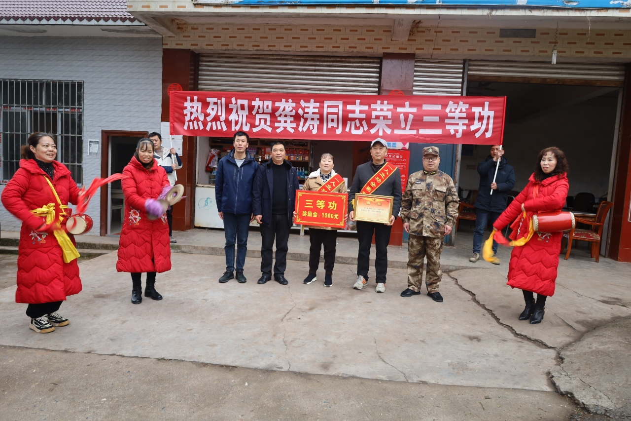 喜报一张纸,荣誉千斤重。12月8日当天,“橄榄绿”志愿服务队敲锣打鼓、送喜报、披绶带,把立功受奖现役军人的荣誉送到家门口。