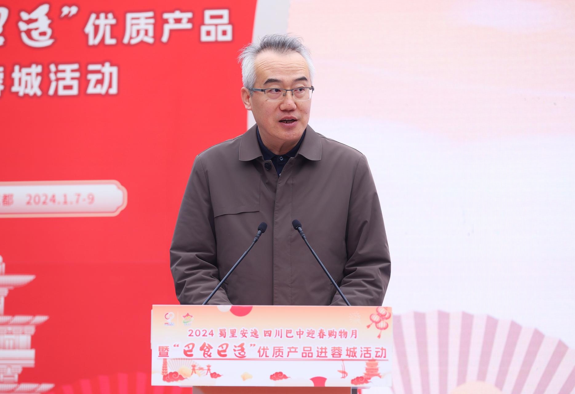 启动仪式上,巴中市委常委、副市长王永生作精彩致辞;巴中市商务局党组书记、局长王良双详细介绍了活动情况;通江县文旅局进行了文旅精品线路宣传推介;通江嘉祐商贸有限公司代表参展企业作了表态发言;出席领导及嘉宾共同见证了2024年“蜀里安逸”四川巴中迎春购物月暨“巴食巴适”优质产品进蓉城活动启动。