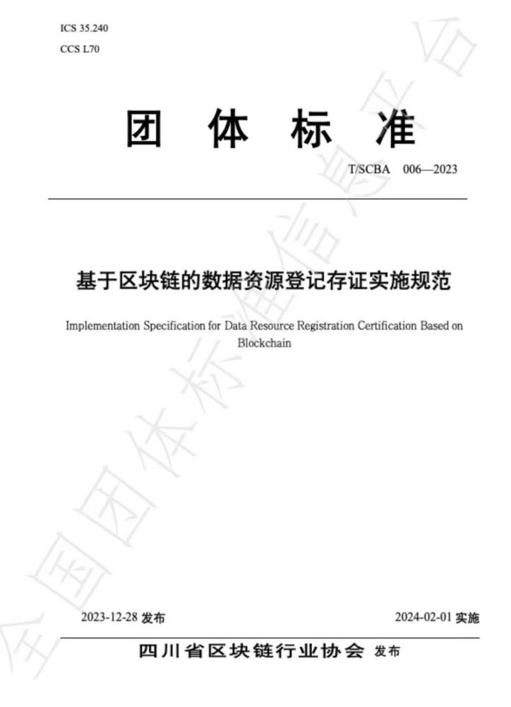 根据国家《团体标准管理规定》和《四川省区块链行业协会团体标准管理办法(试行)》,经立项、起草、征求意见、技术审查等程序,《基于区块链的数据资源登记存证实施规范》(T/SCBA 006—2023)团体标准已通过审批正式发布,并将于2024年2月1日起正式实施。