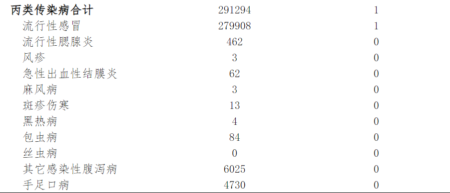 数据显示去年最后一个月,全省无甲类传染病报告。