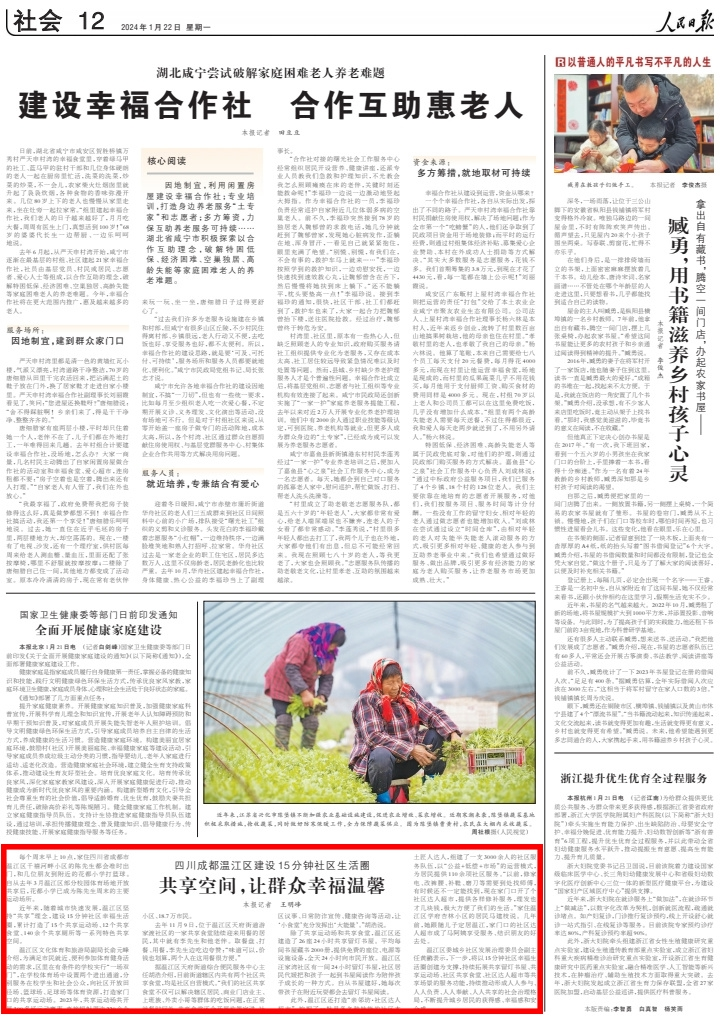 除了共享运动场和共享食堂,温江区还建造了26座24小时共享留灯书屋。平均每间书屋藏书2000册,提供免费的座位、电源等设施设备,全天24小时向市民开放。温江区汪家湾社区有一间24小时留灯书屋,社区居民代媛把和孩子一起到书屋阅读作为陪伴孩子成长的一种方式。自从书屋建好,她每次带孩子在附近玩耍都会去留灯书屋阅读。