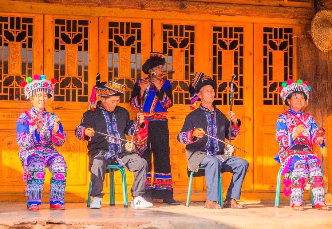 作为我国最大的彝族自然村,在迤沙拉 34平方公里的土地上,居住着604户2225余人,其中彝族人口占全村总人数的96%,素有“天下彝家第一村”之称。从前,这里是四川进入云南的第一个驿站,如今,田地环抱着村庄展现着江南小镇格局和徽派风格建筑。红墙、青瓦、绿石台……古老的红椿树下不时响起的彝族歌声,让这美丽的民族村落成为不少网友心中向往的远方。
