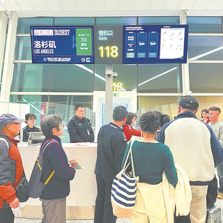 2023年11月24日,成都直飞洛杉矶航线启航,旅客准备登机