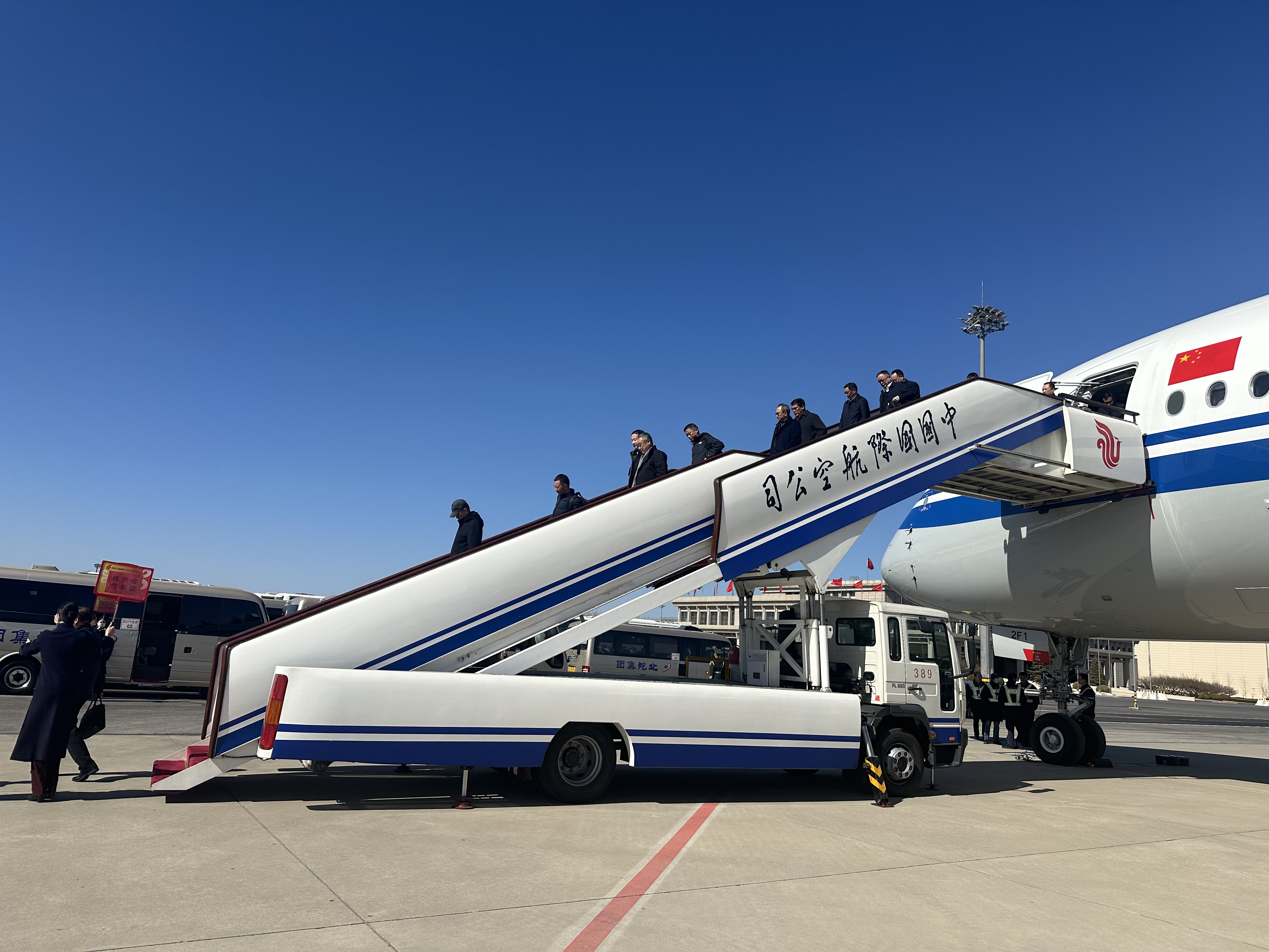 3月3日上午11点15分,出席十四届全国人大二次会议的四川代表团代表顺利抵达首都北京。