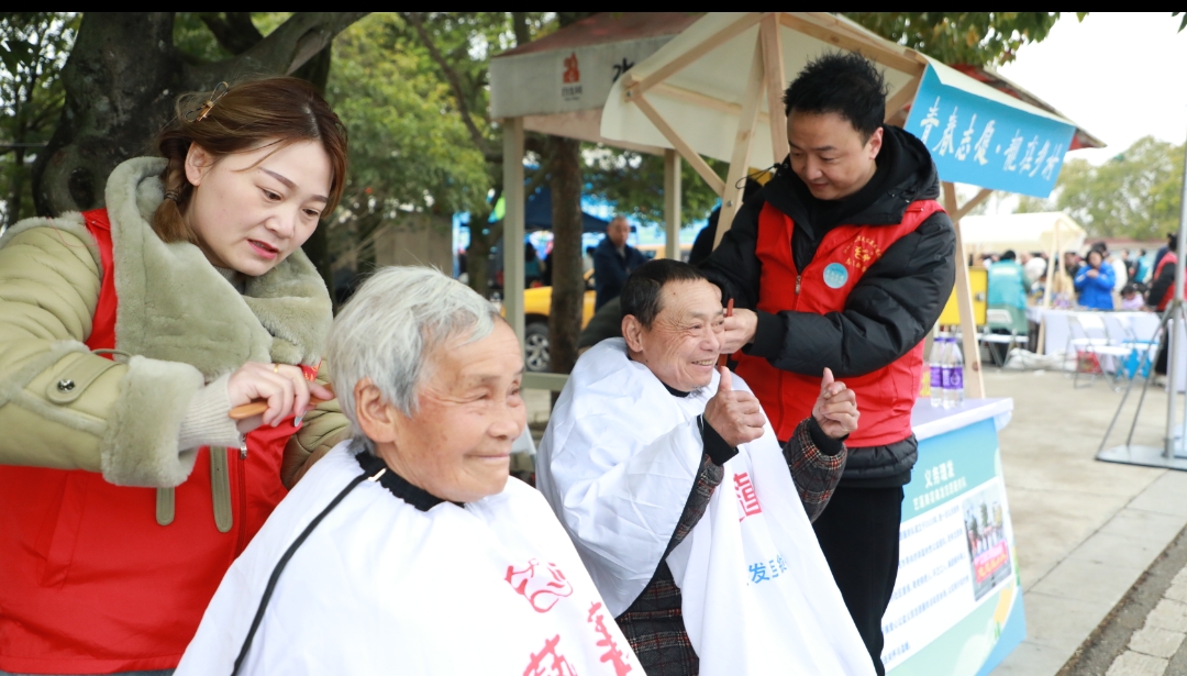 在互动体验区,志愿者们积极向村民宣传党的创新理论和相关政策,开展文艺演出、流动博物馆、非遗体验、义诊、急救知识技能普及、科普教育、助农直播、免费家电维修、义务理发等志愿服务。