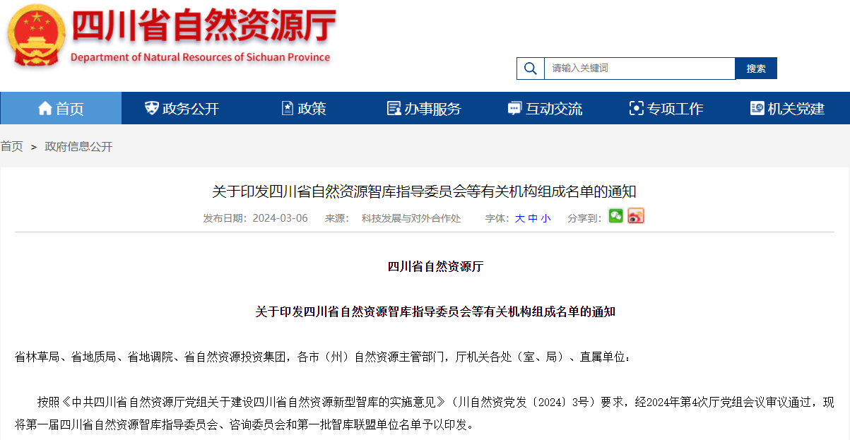 按照《中共四川省自然资源厅党组关于建设四川省自然资源新型智库的实施意见》的部署要求。