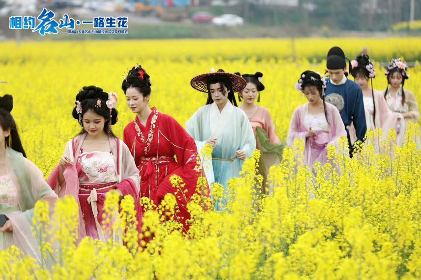 据介绍,本次活动将从3月15日开始持续到3 月24日。除了开幕式外,此次油菜花季还将带来一系列丰富多彩的配套活动,包括大美名山油菜花采风摄影展、特色农产品直播带货及展示展销、汉服花仙子秀及汉服体验打卡、美食嘉年华、赏花巡游、书画大师创作及写生、乡镇节目巡演以及打铁花、乐队驻唱等夜游活动等。