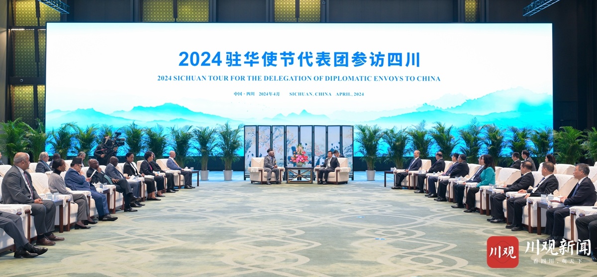 4月8日,省委书记、省人大常委会主任王晓晖,省委副书记、省长黄强在成都会见来川参访的外国驻华使节代表团一行。