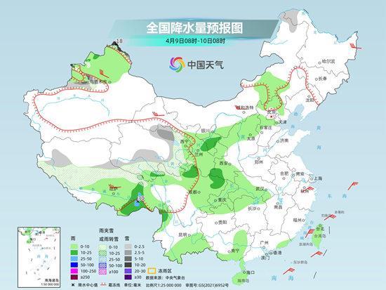 今明两天(4月9日至10日),南方大部处在雨水间歇期,降水稀少,气温逐渐回升;华北、东北多地在冷空气的影响下,将出现弱降水天气,同时部分地区气温下滑。此外需要注意的是,青藏高原中东部雨雪持续,部分地区有小到中雪或雨夹雪。