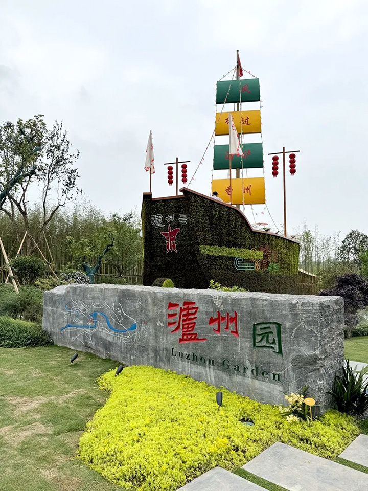 在泸州园内,还将看到荔枝、桂圆、桂花等特色植物,园内道路两侧还栽植了具有酒城特色的兰科植物石斛、兰花等夹道形成泸韵花径。花径右侧绿地空间中,集成立体绿化技术、滴灌技术打造的组合花墙点亮空间。植物设计上充分考虑色彩搭配与季向变化,植物造景充分考虑自然美与艺术美的综合表达,景观节点结合植物与盆景艺术,展示酒城工匠的作品与艺术造诣,泸州园用独具特色的景观语言讲好泸州故事,展现属于醉美泸州的美好人居。(资料来源:成都世园会官网)