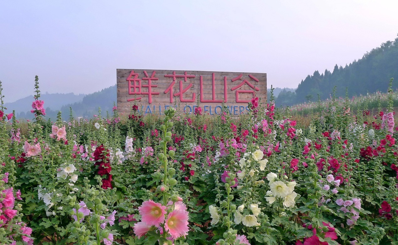 位于成都金堂县的鲜花山谷,是蜀葵种质资源的宝库,收藏了超过1000份种质资源和700个品种,被誉为世界最大的蜀葵基因库。