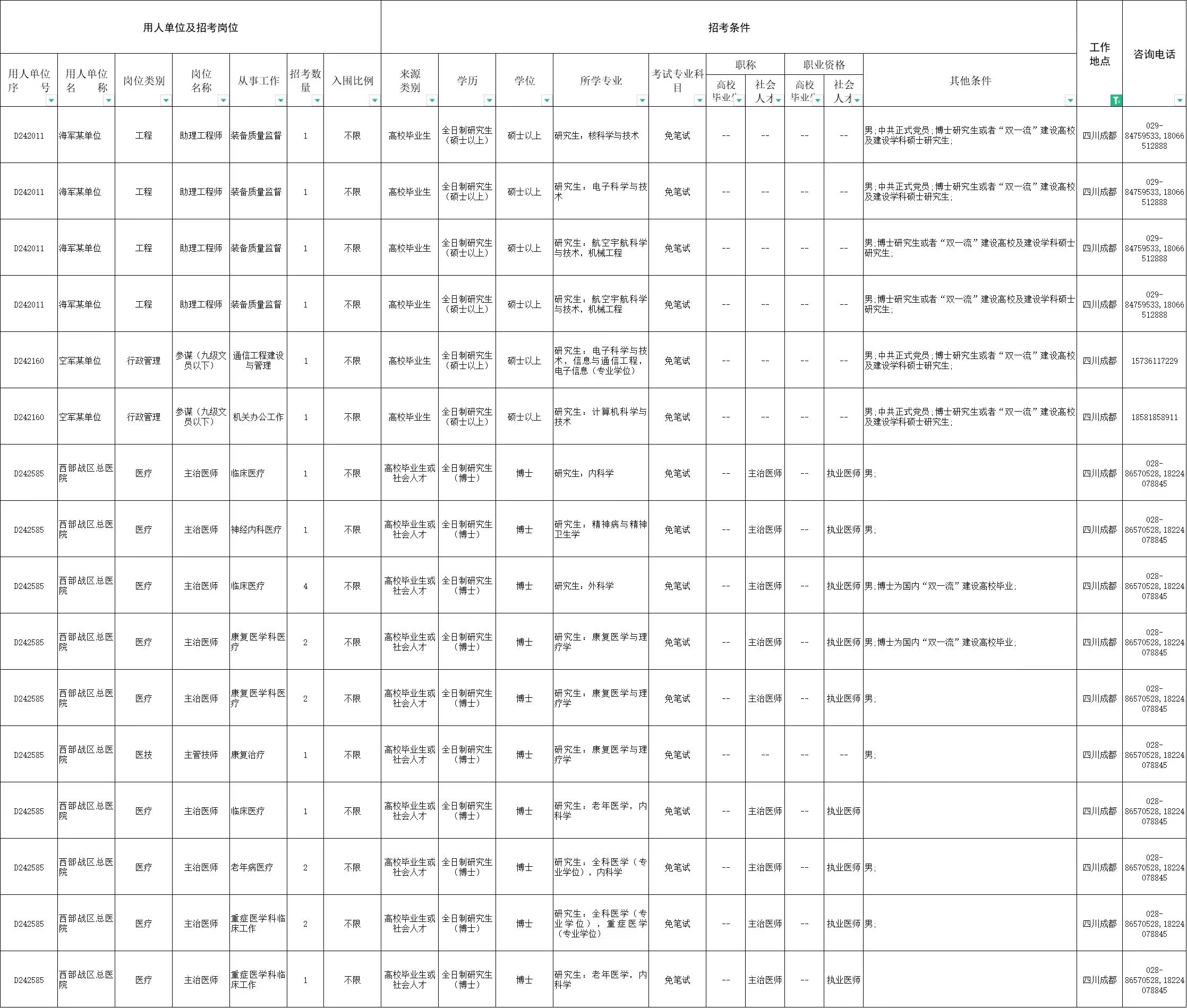 为更好延揽地方优秀人才服务强军事业,根据《军队文职人员公开招考暂行规定》及有关政策规定,中央军委政治工作部将组织2024年军队文职人员公开招考第三批免笔试直接面试岗位招考工作。