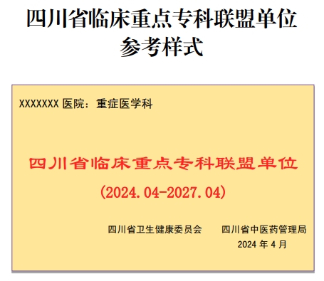 通知要求,首批省级临床重点专科联盟单位挂牌“四川省临床重点专科联盟单位”,请有关单位按照要求统一制作、统一管理,放在显著位置并妥善保管维护,保持整洁、醒目,以便群众辨识,不得伪造、转让或损毁。