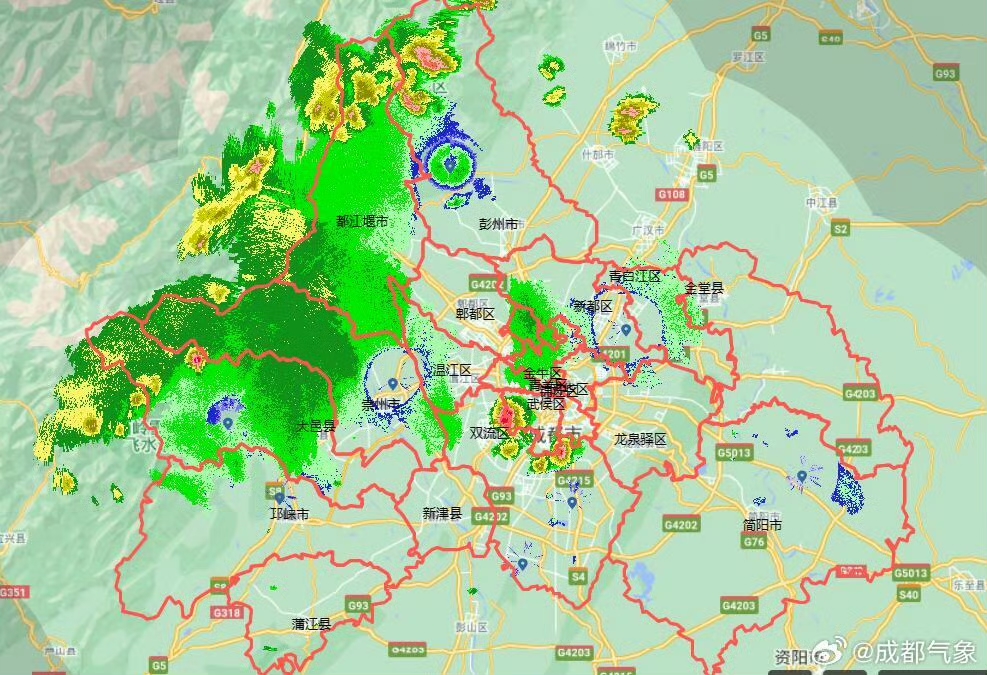 成都市气象台刚刚发布短时临近天气预报:目前成都市高新南区、武侯区、彭州市、都江堰市、大邑县、双流区和天府新区有分散对流发展,预计未来6小时,成都上述地区及周边有分散阵雨,并可能伴有短时强降水和阵性大风,请注意防范。
