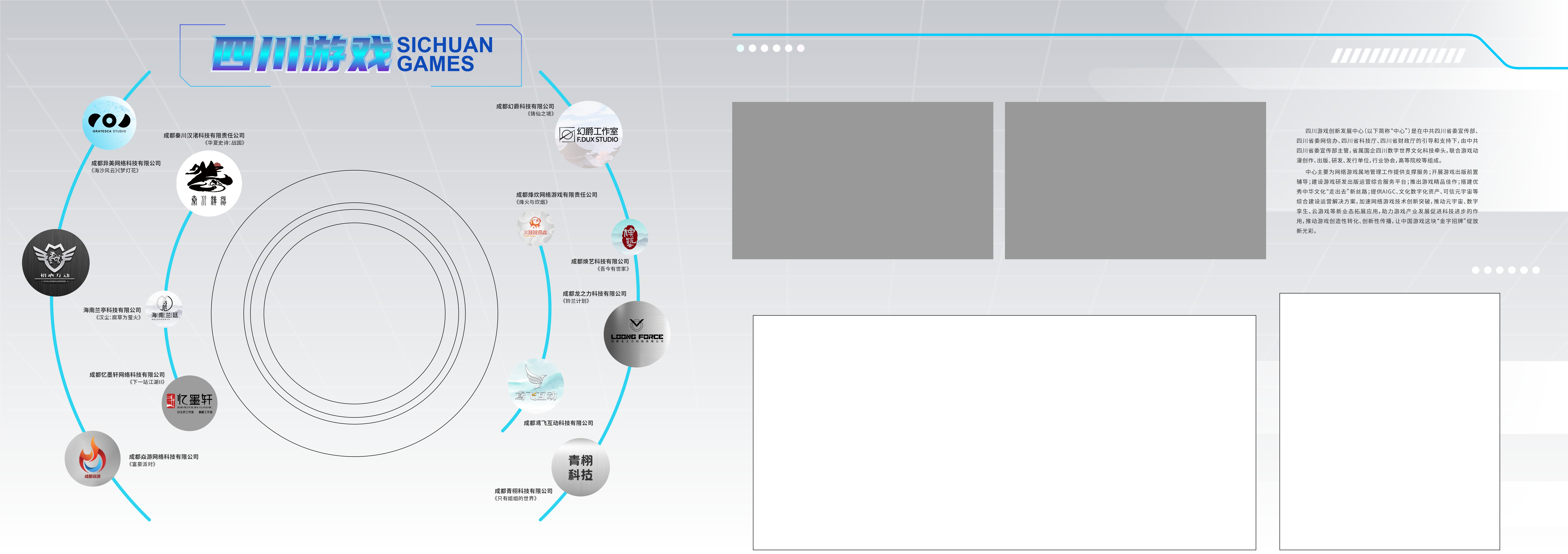 四川游戏展区紧扣“构建游戏新生态推动产业新发展”主题,采用“链接云上”的设计概念,打破馆内与馆外,展区与展区之间的界限,以开放式的结构结合多媒体交互手段进行设计,突破传统展陈方式,探索“全方位、深层次、 多角度”的展览方式。