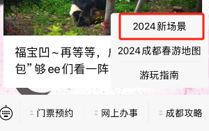 ②关注文旅成都微信公众号,在底部菜单栏点击“成都攻略”,选择“2024新场景”,进入二级页面后点击“投票入口”。