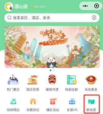 ③打开蓉e游小程序,在首页中间点击“新场景”,如首次使用需绑定手机号,进入二级页面后点击“投票入口”。
