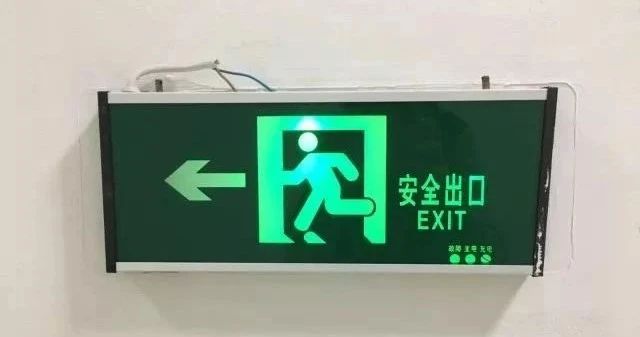 不带箭头的安全出口标志,一般安装在安全出口、疏散门的上方。