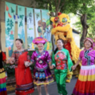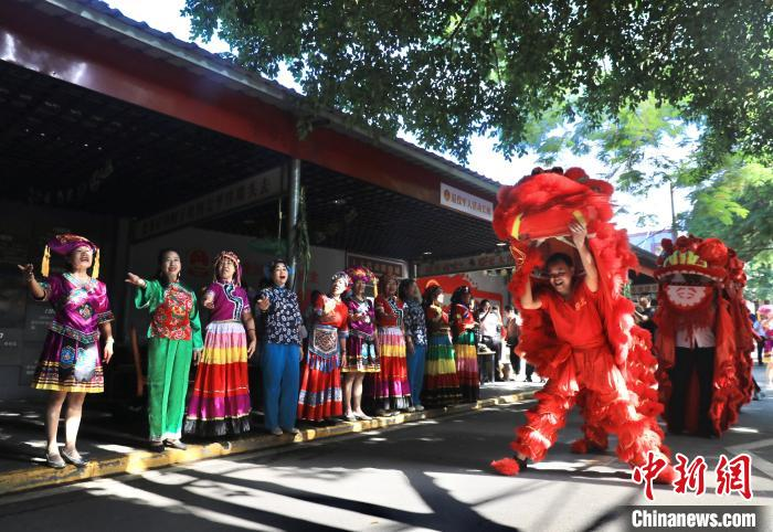 7日上午,四川省攀枝花市东区兰尖社区传来歌声。循声而去,只见身着各种民族服饰的居民正齐声唱歌。眨眼间,又来了一群居民,围着空地跳起了传统打跳舞。忽然,几只大红“狮子”跳跃着来到人群中,不断闪转腾挪。而不远处荫凉的大树下,还有很多居民在打油茶、包粽子……
