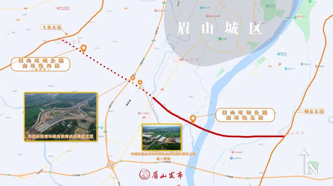 眉山环城公路南环线工程是眉山市“十三五”规划提出的“两横七纵四联两环”一级公路网中两环线的重要一段,该工程西起于工业大道,东止于岷东大道,双向6车道,全长14.3公里。