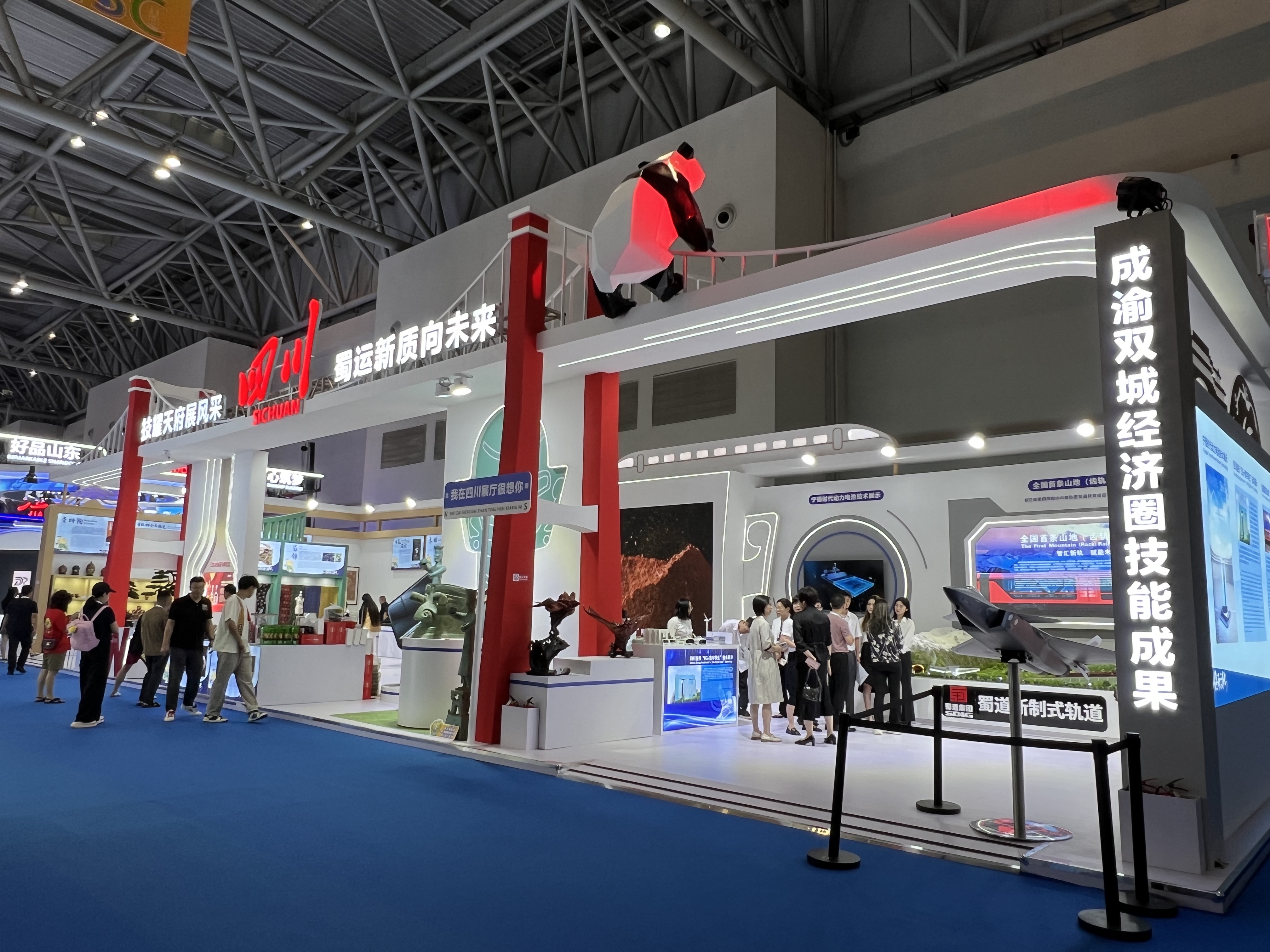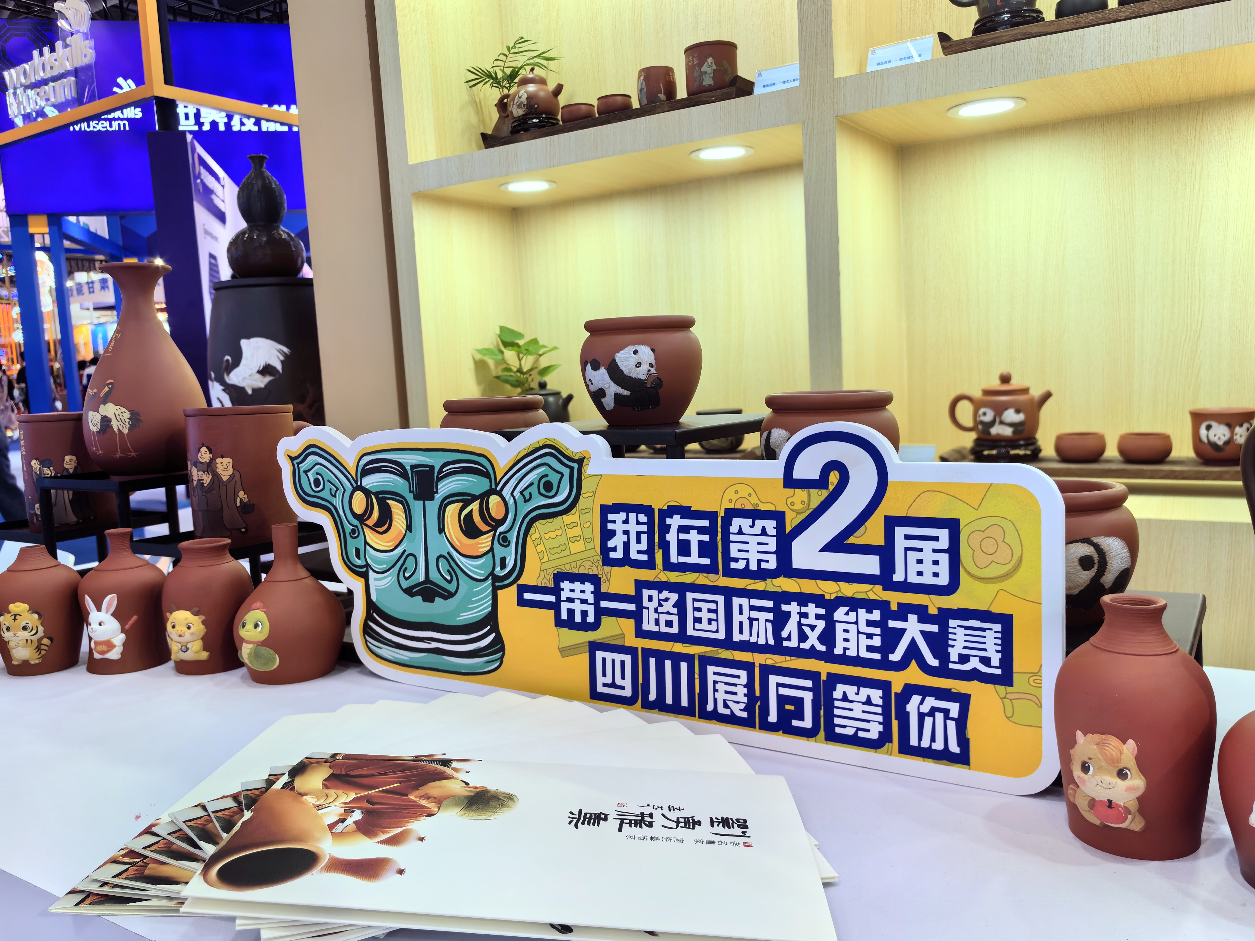 为了更好地展示四川省技能人才队伍建设成果,推动四川与“一带一路”地区国家开展技能领域国际交流,四川从全省精心挑选具有“一带一路”国际元素和四川民俗特色的技能展示项目,搭建250平方米面积的四川展厅,展厅以“技耀天府展风采、蜀运新质向未来”为主题,由新技术展览、互动体验、民俗特色技能展示和成渝双城经济圈技能成果展示等四个部分构成。