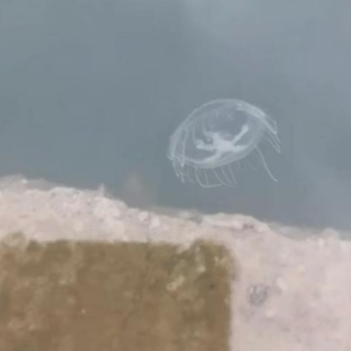 随后,他带着女儿去别处游玩,没过一会儿,他又在岸边发现一只“桃花水母”。