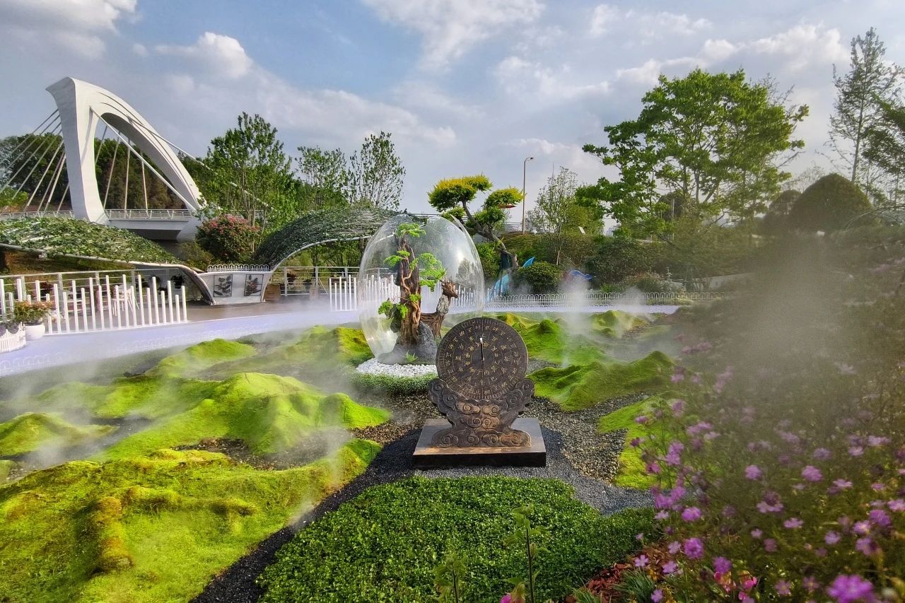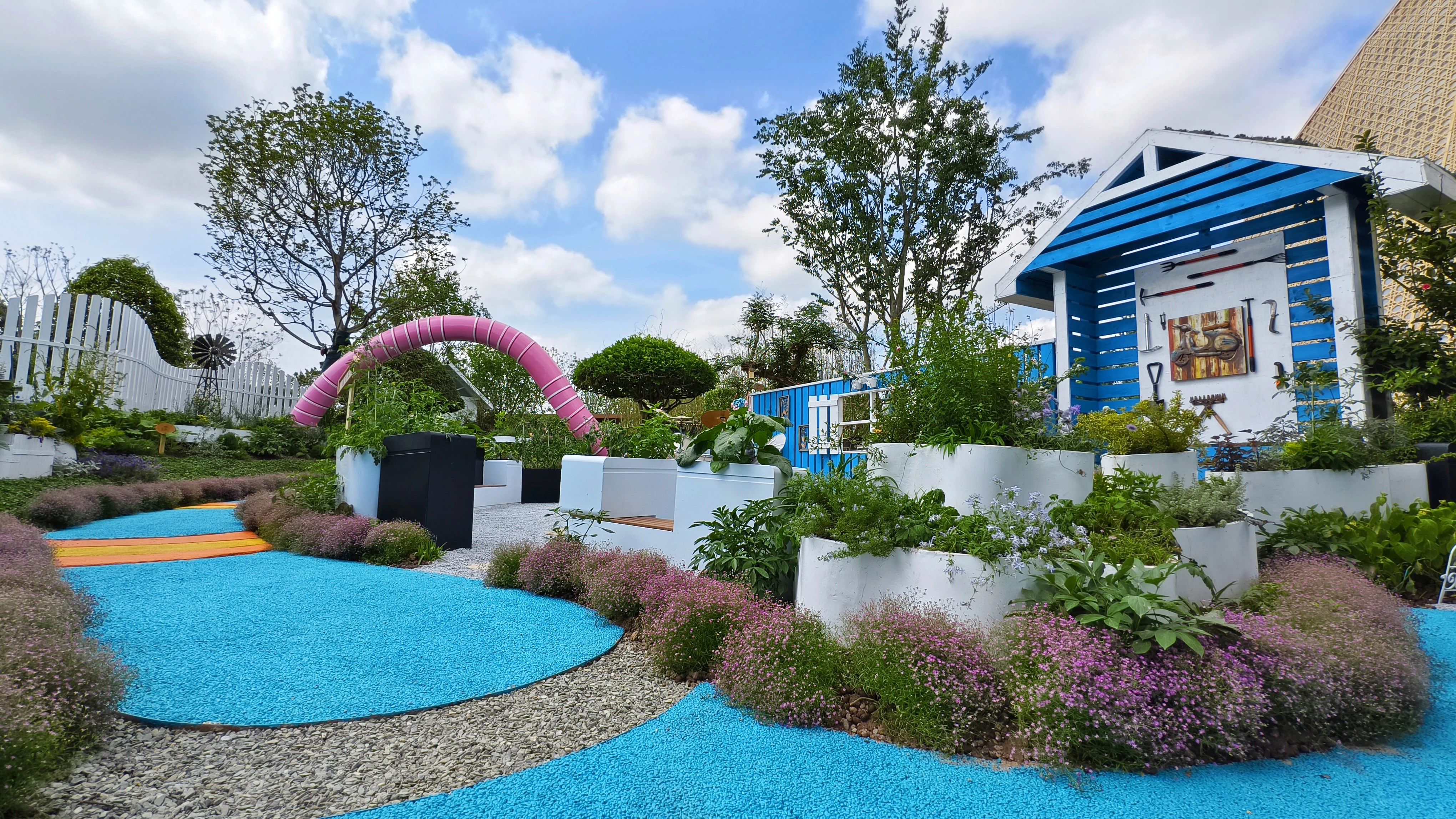 芃(péng)丁花园展园面积2000多平米,包含三大主题园20个打卡节点,除唯美花园满足市民深度体验外,还有厨房花园、文创小院等新消费场景。