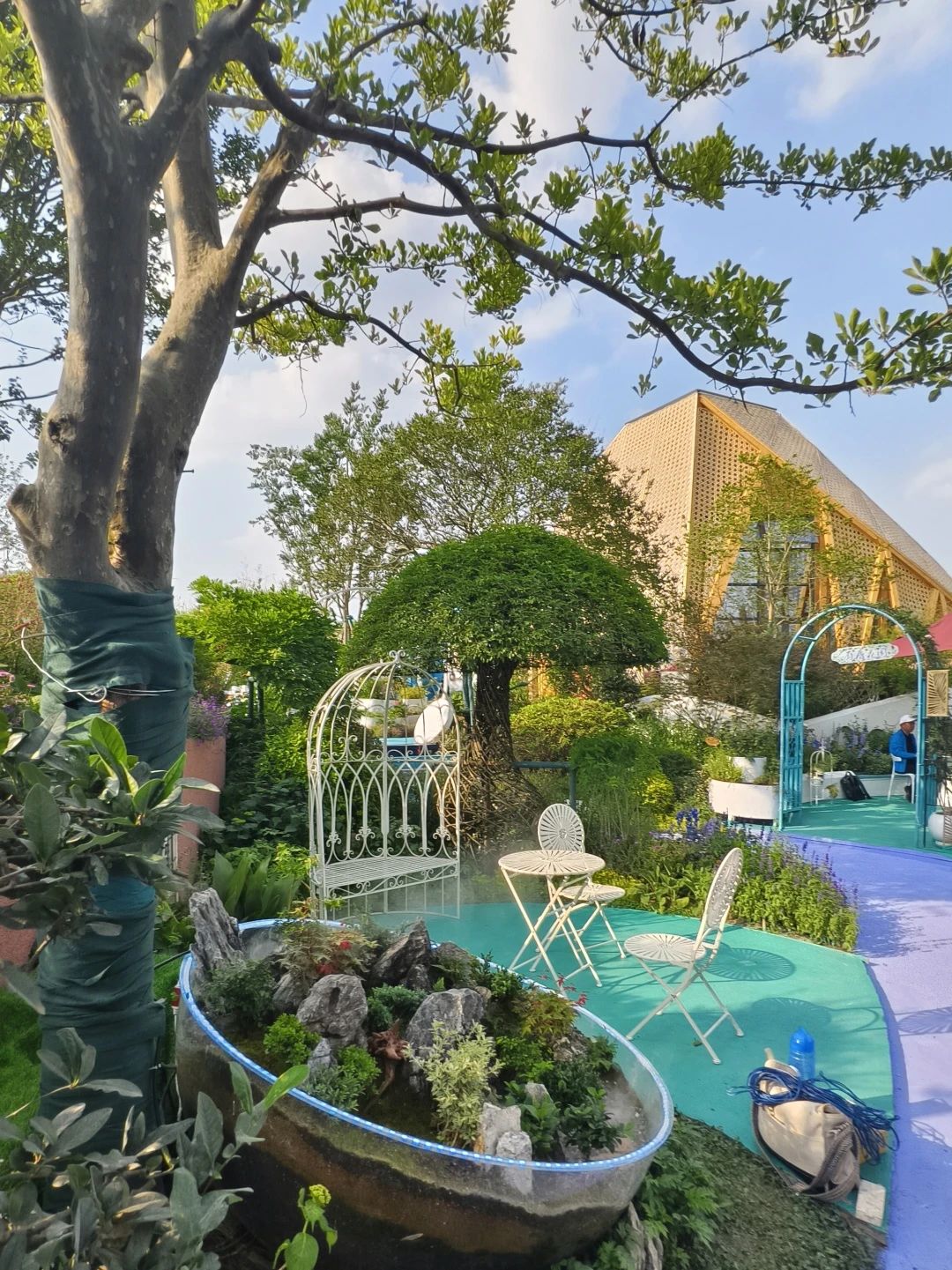 除了突出园艺美化生活和丰富情趣的主体功能,花园中的打卡场景、互动场景和消费场景也让观者能近距离触摸家庭园艺。(资料来源:“2024成都世园会”微信公众号)