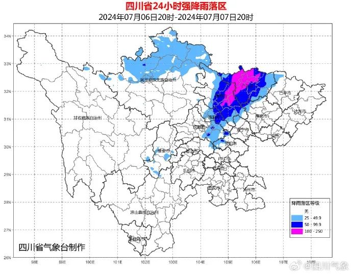 17时,水利厅联合省气象局发布山洪灾害黄色预警:2024年7月6日20时至7日20时,绵阳市江油,广元市利州、昭化、朝天、青川、剑阁等6个县(市、区)发生山洪灾害可能性较大(黄色);德阳市旌阳、罗江、中江,绵阳市涪城、游仙、安州、三台、盐亭、梓潼、北川、平武,广元市旺苍、苍溪,南充市南部、阆中,阿坝州松潘、九寨沟、阿坝、若尔盖、红原等20个县(市、区)可能发生山洪灾害(蓝色)。