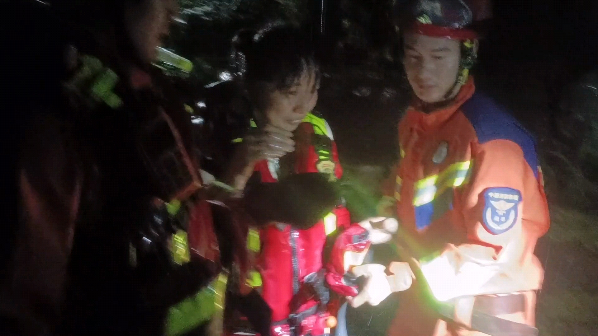 消防员首先使用50米安全绳进行固定,随后,救援人员拿上激流救生衣,沿安全绳,前往营救。到达被困人员位置时,在为女子做好穿戴防护后,沿着安全绳牵着她走出涵洞。