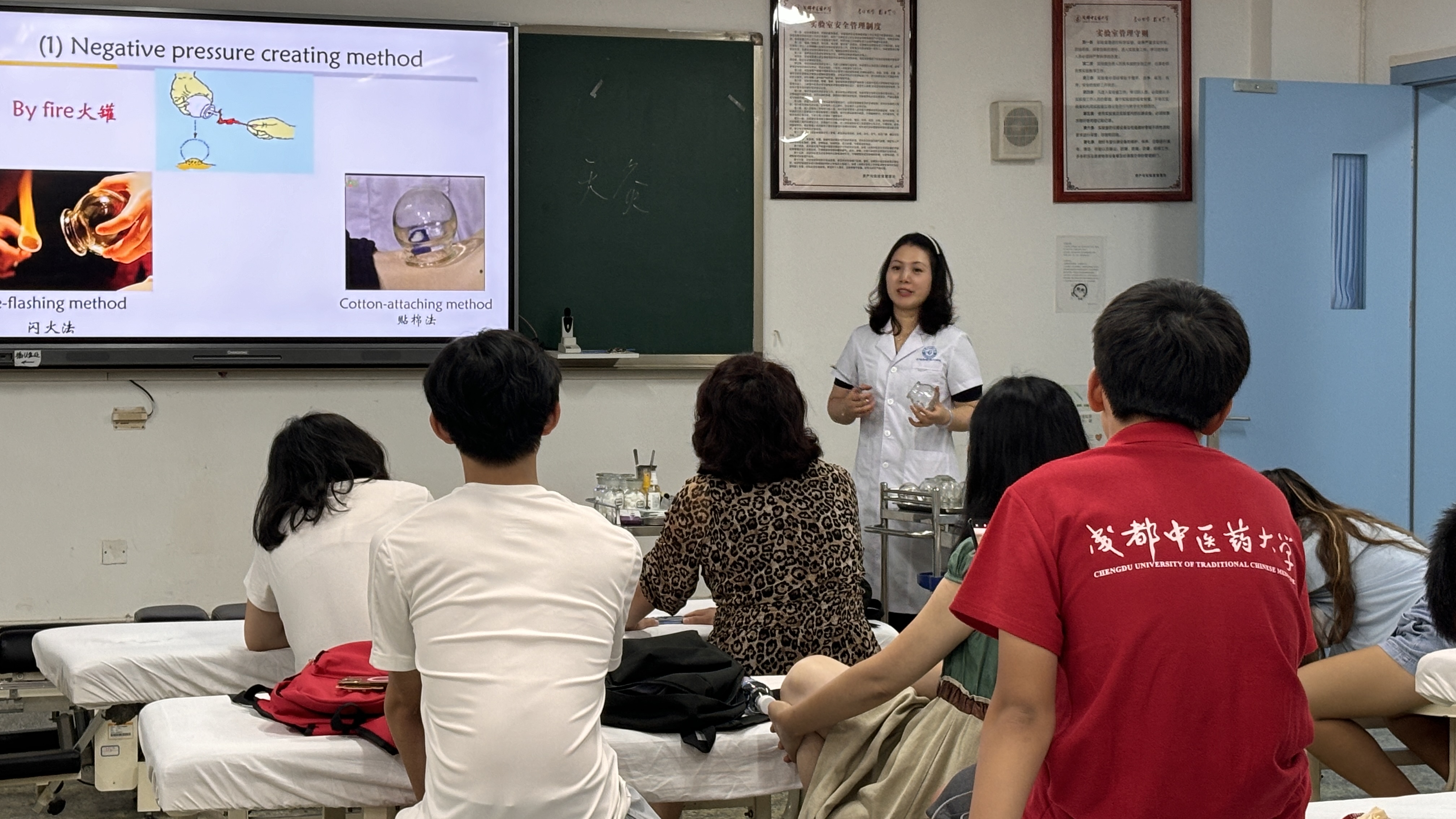 活动现场,来自成都中医药大学的老师为大家讲解了艾灸的原理、类别和手法,并邀请夏令营成员亲身体验不同灸法的差异。在随后的拔火罐和耳穴贴部分,定罐、散罐、走罐等精妙的拔罐技术和神奇的人体经络图也让大家大开眼界。