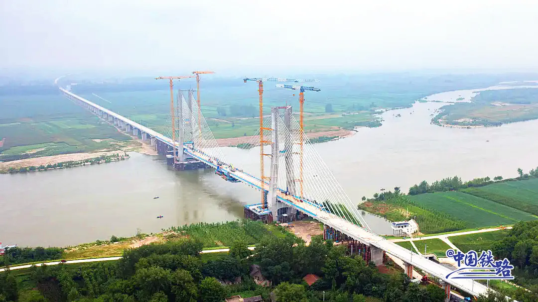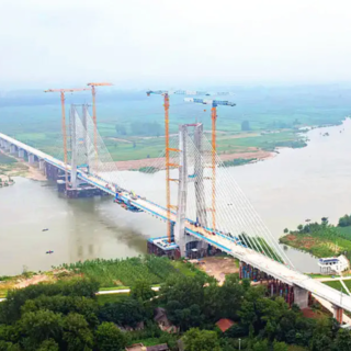 钟祥汉江特大桥主桥位于湖北省荆门市钟祥市石牌镇张家台附近,全长547.5米,设计主跨270米,以斜拉桥形式跨越汉江航道,是沿江高铁武宜段重点控制性工程。