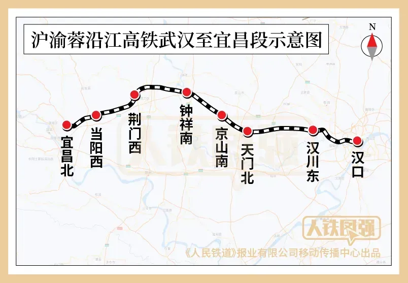 沿江高铁是我国“八纵八横”高铁网沿江高铁通道的重要组成部分,设计时速350公里。武宜段设汉口、汉川东、天门北等8座车站,正线全长313公里。